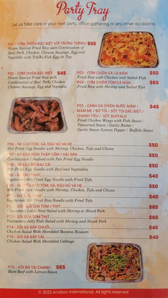 Dakao Restaurant And Bar in Houston offers a wide array of Vietnamese dishes, with a focus on soup options. The menu is extensive, featuring pho, com, bun, hu tieu, banh hoi, and more. Customer reviews highlight the flavorful pho with rich broth, refreshing rare beef salad, and addictive xa xiu noodles. The restaurant's service is quick and attentive, with a spacious and traditional interior design. Standout dishes include the pho ga kho (dry noodles style pho), banh canh ga, and fish sauce chicken. The authenticity and variety of dishes make it a go-to spot for flavorful and satisfying Vietnamese cuisine. Don't miss out on their Vietnamese iced coffee and clay pot fish for a complete dining experience. The bustling weekend crowd is a testament to the quality and popularity of Dakao Restaurant And Bar.